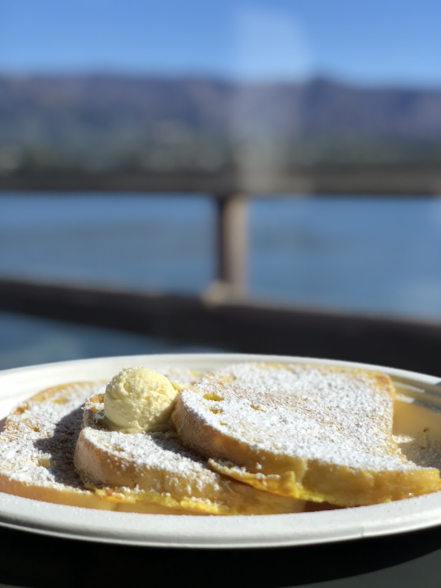 Char West is a no nonsense casual eatery located on Stearns Wharf. This place ain't fancy. It's counter service. The summer hours are 7am-7pm. Breakfast is served until 11 am, after that lunch is served. The menu includes coffee drinks, breakfast, burgers, fish n chips, clam strips, Clam chowder, fish sandwich, and salad. They even have a kids menu. It's a small place with limited seating with a few tables outside. The interior dining room has some windows, try to snag those tables for the view of the ocean. If you sit outside, watch out for the birds. They have no qualms of helping themselves to your food. Onto talking about the food... Char West self proclaims that the blueberry wheat germ pancakes are famous. It was past 11am when I visited, so I missed out on their claim to fame. Instead Hubs and I shared a cheeseburger and fries. $12.50. The patty was of a substantial size and pretty tasty. Moist and flavorful even fur a pre frozen patty. The bun was substantial and the fixings (sliced tomato and shredded iceberg lettuce) were fresh. sClassic, simple burger done right. I got no complaints about the fries. Served hot and golden crisp.